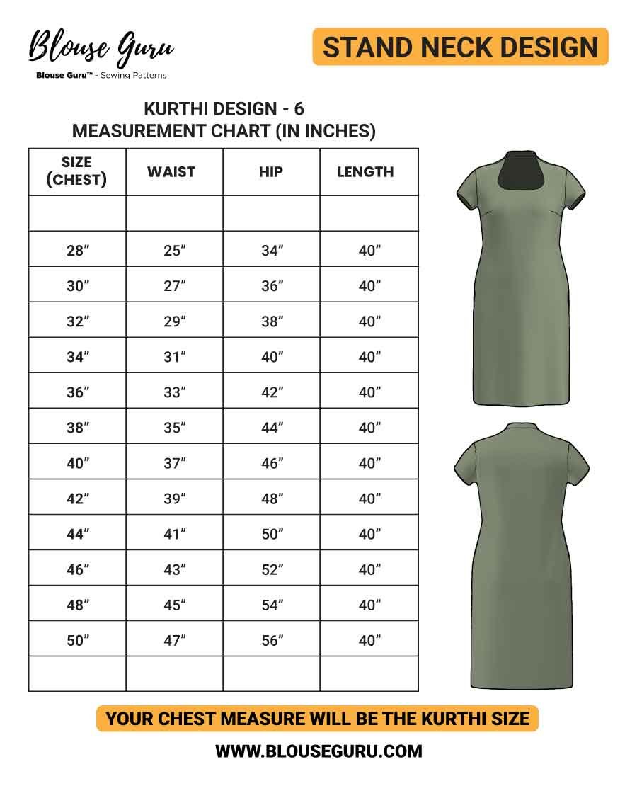 YOUR CHEST MEASURE WILL BE THE KURTHI SIZE